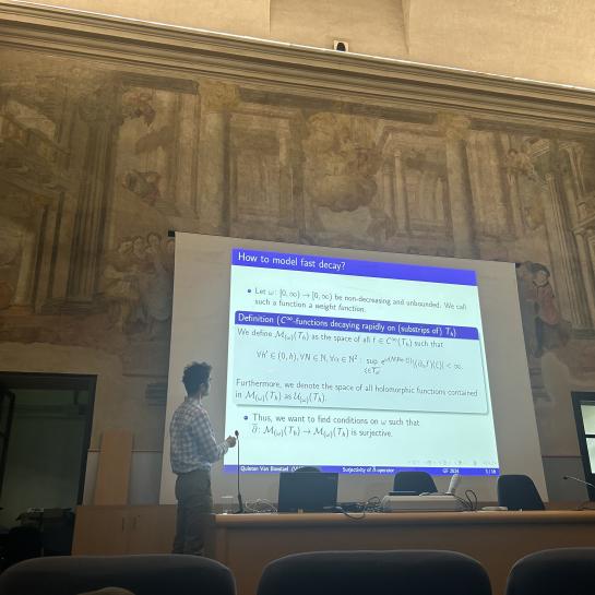 Team Zelfstandig Academisch PersoneelAdministratieve ondersteuningDoctoraatsstudentenPostdoctorale onderzoekersOnderwijsmedewerkersValorisatieteamToetsontwikkelaarsFellowsEmeriti Zelfstandig Academisch Personeel Jan DE BEULE Prof. Dr. Academisch personeel E-mailadres Jan.De.Beule@vub.be Telefoonnummer +32-2-6293550 Aida Abiad Monge Deeltijds ZAP Academisch personeel E-mailadres a.abiad.monge@tue.nl Stefaan CAENEPEEL Prof. Dr. Em. Academisch personeel E-mailadres scaenepe@vub.be Telefoonnummer +32-2-6292908 Philippe CARA Prof. Dr. Academisch personeel E-mailadres Philippe.Cara@vub.be Telefoonnummer +32-2-6293349 Kenny DE COMMER Prof. Dr. Academisch personeel E-mailadres Kenny.De.Commer@vub.be Telefoonnummer +32-2-6293411 Andreas DEBROUWERE Prof. Dr. Academisch personeel E-mailadres Andreas.Debrouwere@vub.be Telefoonnummer +3226293494 Ann DOOMS Prof. Dr. Academisch personeel E-mailadres Ann.Dooms@vub.be Telefoonnummer +32-2-629 34 88 Tomas Everaert Deeltijds ZAP Academisch personeel E-mailadres Tomas.Everaert@vub.be Geoffrey Janssens Deeltijds ZAP Academisch personeel E-mailadres Geoffrey.Janssens@vub.ac.be Renaud Lambiotte Deeltijds ZAP Academisch personeel E-mailadres renaud.lambiotte@maths.ox.ac.uk Tan LU Prof. Dr. Academisch personeel E-mailadres Tan.Lu@vub.be Telefoonnummer +32-2-629 33 34 Julia Plavnik Deeltijds ZAP Academisch personeel E-mailadres jplavnik@iu.edu Mark SIOEN Prof. Dr. Academisch personeel E-mailadres msioen@vub.be Telefoonnummer +32-2-6293489 Yvik Swan Deeltijds ZAP Academisch personeel E-mailadres Yvik.Swan@ulb.be David Tewodrose Prof. Dr. Academisch personeel E-mailadres David.Tewodrose@vub.be Michel VAN DEN BERGH Prof. Dr. Academisch personeel E-mailadres michel.vandenbergh@uhasselt.be Telefoonnummer +32-2-6293471 Tim Van der Linden Deeltijds ZAP Academisch personeel E-mailadres tim.vanderlinden@uclouvain.be Kelly Van Lancker Deeltijds ZAP Academisch personeel E-mailadres Kelly.Van.Lancker@vub.be Leandro VENDRAMIN Prof. Dr. Academisch personeel E-mailadres Leandro.Vendramin@vub.be Telefoonnummer +3226293493 Michal WROCHNA Academisch personeel E-mailadres m.wrochna@uu.nl Administratieve ondersteuning Karina Segers Secretaresse Administratief en technisch personeel E-mailadres Karina.segers@vub.be Telefoonnummer 02/629 34 71 Doctoraatsstudenten Arthur Van Beersel PhD student E-mailadres Arthur.Van.Beersel@vub.be Sam ADRIAENSEN Postdoctorale onderzoeker E-mailadres sam.adriaensen@vub.be Telefoonnummer 02629 29 91 Nicolo Cont PhD student Prof. David Tewodrose PhD student E-mailadres Nicolo.Cont@vub.be Leen DEMUYS PhD student Prof. Dr. Ann Dooms & Prof. Dr. Jan De Beule PhD student E-mailadres leen.demuys@vub.be Telefoonnummer 02629 29 91 Luca Descheemaeker PhD student Prof. Dr. Kenny De Commer PhD student E-mailadres luca.descheemaeker@vub.be Manuel Dias PhD student Prof. Dr. David Tewodrose PhD student E-mailadres Manuel.Dias@vub.be Joel Right DZOKOU PhD student E-mailadres Joel.Right.Dzokou.Talla@vub.be Telefoonnummer 02 629 34 98 Davide Ferri PhD student Prof. Dr. Leandro Vendramin (joint PhD with Turin, co-supervisor: Alessandro Ardizzoni) PhD student E-mailadres Davide.Ferri@vub.be Thomas Letourmy PhD student Prof. Dr. Leandro Vendramin (joint PhD with ULB, co-supervisor: Joost Vercruysse) PhD student E-mailadres thomas.letourmy@ulb.be Andreas Lorrain PhD student E-mailadres Andreas.Lorrain@vub.be Joeri LUDO DE RO PhD student E-mailadres Joeri.Ludo.De.Ro@vub.be Telefoonnummer 02 629 34 98 Wannes Malfait PhD student E-mailadres wannes.malfait@vub.be Silvia PROPERZI PhD student Prof. Dr. Leandro Vendramin PhD student E-mailadres silvia.properzi@vub.be Telefoonnummer +32-2-6293476 Yufei Qin PhD student E-mailadres Yufei.Qin@vub.be Charlotte Roelants Supervisors: Leandro Vendramin and Alessandro Ardizzoni PhD student E-mailadres Charlotte.Roelants@vub.be Lukas Simons Phd student Leandro Vendraming PhD student E-mailadres Lukas.Simons@vub.be Willy Carlos TCHUITCHEU PhD student E-mailadres willy.carlos.tchuitcheu@vub.be Yarne TRANOY PhD student E-mailadres Yarne.Tranoy@vub.be Senne TRAPPENIERS PhD student Prof. Dr. Leandro Vendramin PhD student E-mailadres senne.trappeniers@vub.be Telefoonnummer +32-2-6293476 Quinten Van Boxstael PhD student Prof. Dr. Andreas Debrouwere PhD student E-mailadres Quinten.Van.Boxstael@vub.be Jim WITTEBOL PhD student E-mailadres jozef.johannus.wittebol@vub.be Telefoonnummer 02 629 34 67 Postdoctorale onderzoekers Sam ADRIAENSEN Postdoctorale onderzoeker E-mailadres sam.adriaensen@vub.be Telefoonnummer 02629 29 91 Andrew Darlington postdoctoral researcher here, working with Professor Leandro Vendramin Postdoctorale onderzoeker E-mailadres Andrew.Darlington@vub.be Jacek KRAJCZOK Postdoctorale onderzoeker E-mailadres jacek.krajczok@vub.be Godwin Komla Krampah Postdoctorale onderzoeker E-mailadres Godwin.Komla.Krampah@vub.be Meijun Liu Postdoctorale onderzoeker E-mailadres Meijun.Liu@vub.be Jonathan MANNAERT PhD student Prof. Dr. Jan De Beule Postdoctorale onderzoeker E-mailadres mannaertjonathan@gmail.com Telefoonnummer 02 36293467 Sam MATTHEUS Post-doc Postdoctorale onderzoeker E-mailadres sam.mattheus@vub.be Susovan Pal Post-doc: David Tewodrose Postdoctorale onderzoeker E-mailadres Susovan.Pal@vub.be Telefoonnummer 026293471 Kevin Piterman Post-doc: Prof. Dr. Leandro Vendramin Postdoctorale onderzoeker E-mailadres Kevin.Piterman@vub.be Arne Van Antwerpen Post-doc: Prof. Dr. Leandro Vendramin Postdoctorale onderzoeker E-mailadres arne.van.antwerpen@vub.be Wouter VAN DEN HAUTE FWO Postdoctoral Researcher Postdoctorale onderzoeker E-mailadres wvdhaute@vub.be Samuel Wauthier Postdoctorale onderzoeker E-mailadres Samuel.Wauthier@vub.be Magdalena Wiertel NAWA Postdoctorale onderzoeker E-mailadres Magdalena.Wiertel@vub.be Toetsontwikkelaars Timothy Bal Toetsontwikkelaar E-mailadres Timothy.Bal@vub.be Nico Deloddere Toetsontwikkelaar E-mailadres Nico.Deloddere@vub.be Tom Dierckx Toetsontwikkelaar E-mailadres Tom.Dierckx@vub.be Matthias Floré Toets